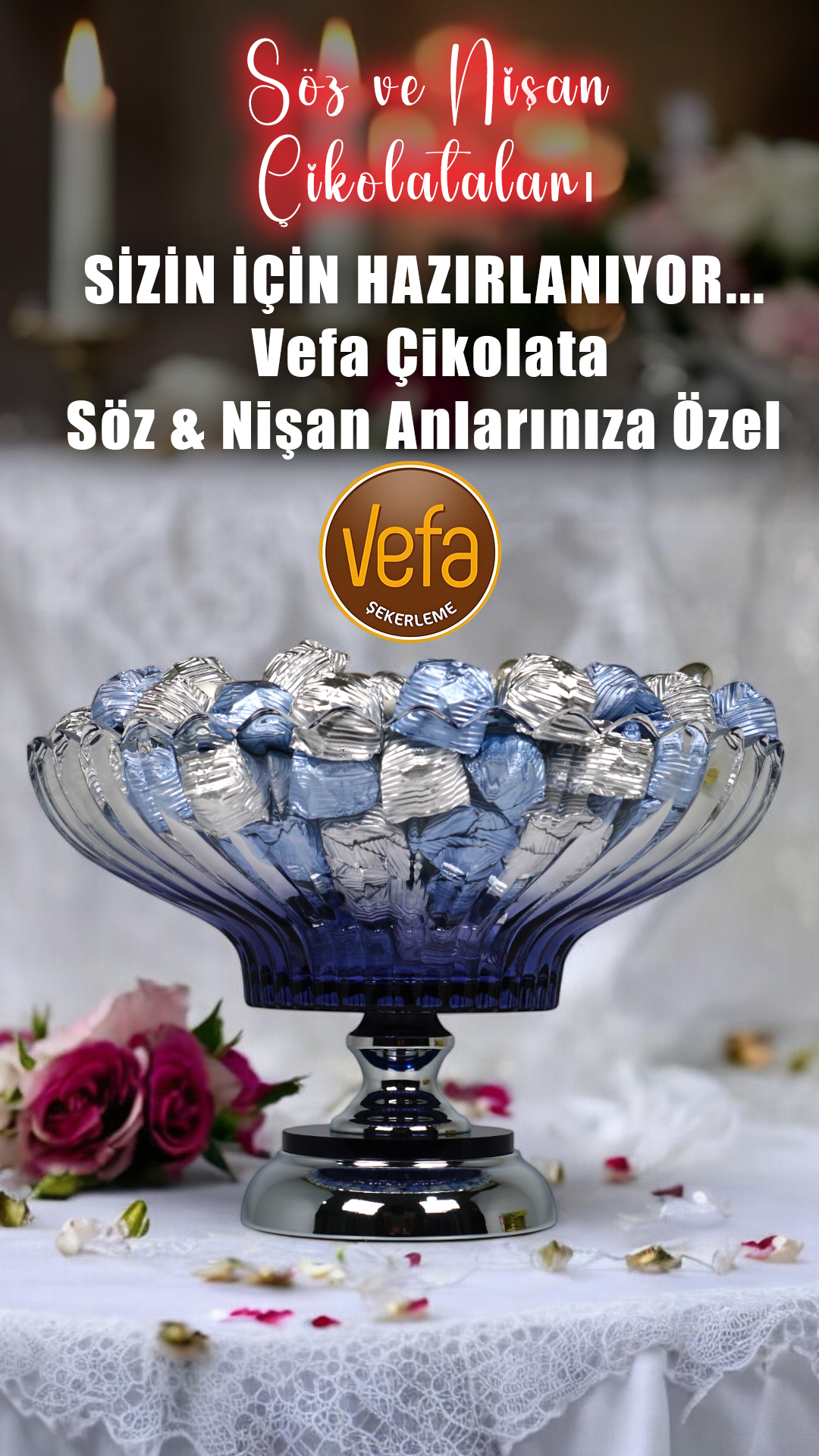 Vefa Şekerleme olarak, Balıkesir’de söz, nişan ve kız isteme çikolataları konusunda kişiye özel, şık ve zarif sunumlar hazırlıyoruz.